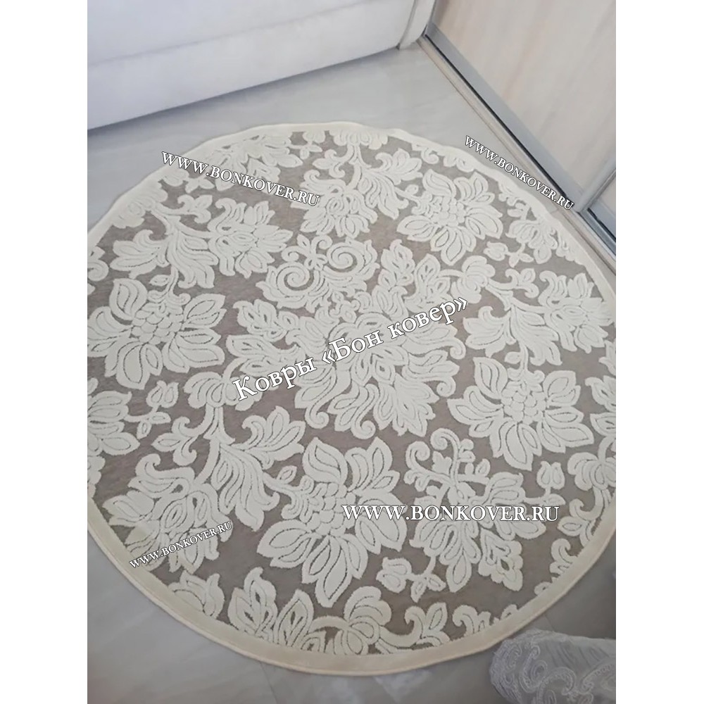 Изящный Тонкий Ковер Из Вискозы Круг Арт 30540 наполняет интерьер вашего дома теплом и уютом, гармонично сочетает в себе изящество и стиль. Он создан из экологически чистого сырья, прочный и долговечный.